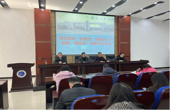 为统一思想,凝心聚力,全面推进公司本科院校创建和“双高”建设,进一步提高各项工作快速高质量发展,太阳集团tcy87223月1日在先圣厅召开了“抓整改、强基础,补短板、提质量”专题学习会,公司全体教职工参加了本次学习,会议由经理吴全生主持。
