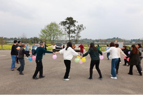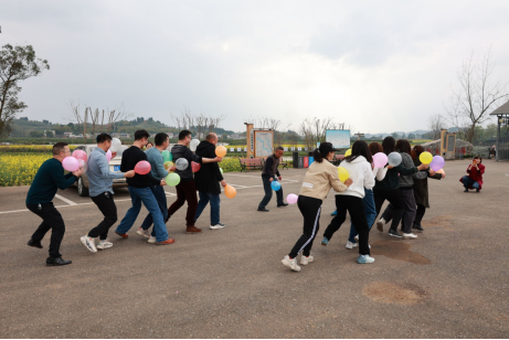 早晨8点,迎着春日的朝阳,伴着和煦的春风,满载的校车从公司出发,大家欢歌笑语,9点50分,大巴车到达景区停车场。按照既定路线安排,一行人沿着登山步道上山,一路伴着清风到达陈抟山景区观景台,远眺过去,映入眼帘的就是一副如诗如画油菜花的景象。花海的香气随着清风扑面而来,金黄的一片,与高大的陈抟雕塑相融合,勾勒出一道壮美的风景线。中午,大家品尝了当地的特色美食,有“太安鱼”、“双椒兔”等。小憩之后,组织开展了“正话反说”、“毛毛虫赛跑”、“狭路相逢”、“丢手绢”等项目的团建活动,通过一个个游戏互动,大家追忆了童年、增进了感情、放松了身心,整个活动都展现了公司教师良好的精神风貌。团建活动结束后,大家又一同乘坐了景区小火车,穿梭在油菜花田与粉色桃林中,近距离欣赏了花海的美景,感受了春天的气息与大自然的和谐。大家利用自由活动时间,三五成群、或驻足赏景、或拍照留念、或说笑逗乐,轻松惬意,其乐融融。