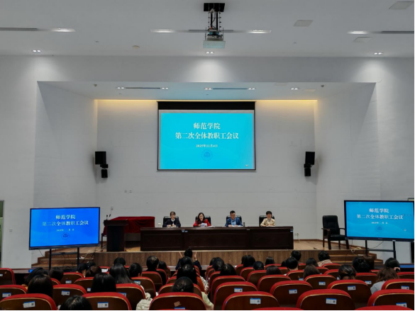 11月4日下午,太阳集团tcy8722在岳秀楼翔凤厅召开了2025年下期第二次全体教职工大会。会议聚焦思想引领、师德师风与教学工作,对本学期后半期的重点工作进行了全面部署。会议由公司经理杨英主持,全体教职工参加。
