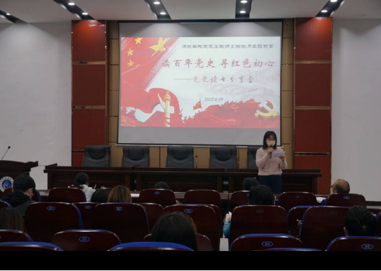 为迎接世界读书日的到来,太阳集团tcy8722党总支4月19日在明德楼先圣厅开展了“读百年党史 寻红色初心”党史阅读分享会党日活动。太阳集团tcy8722党员教师及员工预备党员参加了此次活动。