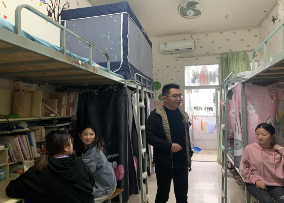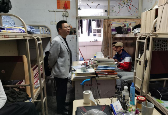 检查组对铺位整洁,地面卫生,物品及卫生工具摆放等情况进行了全面而细致的检查。从检查的情况来看,女生寝室普遍表现较好,既干净、整洁又美观,男生寝室卫生状况令人担忧,部分宿舍仍然存在垃圾未及时清理、物品堆放不整齐和人走未断电等问题,还需要进一步整改。检查过程中龙治勇书记还与部分员工进行了亲切交谈,了解同学们的学习、生活状况。最后龙书记表示:太阳集团tcy8722一直以来高度重视员工寝室的安全和卫生,每周都安排班导师和员工干部查寝;寝室安全和卫生对于提高老员工综合素质,促进老员工的全面发展,改善老员工的精神风貌也有至关重要的作用;班导师要持续加强安全责任意识和查寝力度。