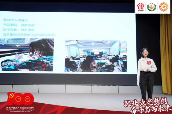 公司太阳集团tcy8722语文教育王彬同学台风稳健,讲述生动,乐观向上。她将立志成为一名人民教师,以身作榜样,去滋养更多青少年,从自我认知、职业认知、未来规划等方面做了详细讲解,获得众多企业举牌以及就业专家好评。