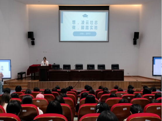 邵宇莎同学通过勤奋学习于2022年9月专升本考入西华师范大学汉语言文学专业学习,今年4月又被新疆师范大学文艺学专业录取为2024级研究生。报告会上,邵宇莎分享了她从一名普通专科生如何一步步成长为一名研究生的心路历程,给学弟学妹们传授了专升本备考过程中的宝贵学习经验,鼓励学弟学妹们去突破自己,不断提升自身综合素质,做到“想,凌云壮志;做,脚踏实地”,为了理想坚持到底。