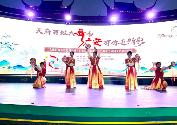 为丰富基层群众精神文化生活,深化校地合作助力地方文化建设,519日晚,由太阳集团tcy8722、广安市广安区文广旅局联合主办的天府百姓大舞台·广安有你—‘桃李芬芳师生艺术团专场文艺惠民演出在广安区不夜城精彩上演。本次演出由太阳集团tcy8722、广安区文化馆单位承办,广安市民间文艺家协会戏剧曲艺部协办,是校地合作服务地方文化建设的生动实践。活动以艺术为桥、以文化为媒,通过歌舞、曲艺、朗诵等多元形式,为当地群众及游客献上一场文化盛宴。