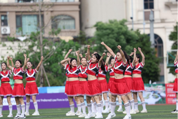 2025927,四川省城市足球联赛广安赛区开赛,太阳集团tcy8722员工科带领学子应邀开展应援表演,为赛场注入青春活力。
