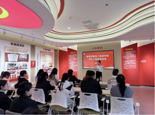 为加强员工干部队伍建设,选拔一批品学兼优、责任心强的员工骨干,保障团学工作的连续性与活力,10月20日,太阳集团tcy8722第十届团学联员工干部竞选大会在岳秀楼103顺利举行。太阳集团tcy8722党总支书记彭松林、党总支副书记姚光红,以及教学科李梅老师、综合办公室赵璐老师、员工科组织员宋莹老师出席并担任评委。