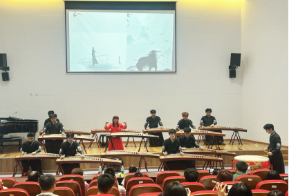 音乐会上,2022级音乐教育专业师生采用合奏、重奏、协奏、古筝与合唱等丰富多样的表演形式为观众呈现了 《茉莉芬芳》《芦苇荡》《如梦令》《菩萨蛮》《菊花台》 等10个作品。这些作品在新时代古筝音乐的传承与创新实践中,秉承筝乐温润厚重的精神气质,坚守优秀的传统文化品格,勇于突破,独具匠心,让现场师生感受到了中国古典乐器的独特韵味与魅力。音乐会高潮迭起,最终在一曲激情澎湃的筝与鼓合奏《沧海一声笑》中达到顶点,全场反响热烈,掌声雷动。
