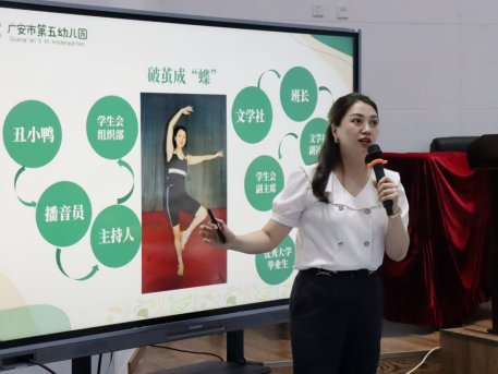 讲座现场园长以个人从教经历为叙事主线,精心设计 学习篇”“求职篇”“追梦篇”“圆梦篇四大篇章,徐徐展开一幅充满奋斗与温情的幼教工作者成长画卷。在学习篇,她用丰富的求学细节,生动展现知识积累过程中的坚持与蜕变;“求职篇” 里,她以自身从青涩毕业生到职场精英的逆袭历程,为同学们传授宝贵的职业发展经验;追梦篇中,她讲述自己立志创办区域优质园的初心与挑战,展现出幼教人对事业的执着追求;在圆梦篇”,一张张孩子们纯真的笑脸、一封封家长真挚的感谢信,将桃李满园的幸福瞬间定格,引发全场强烈共鸣。