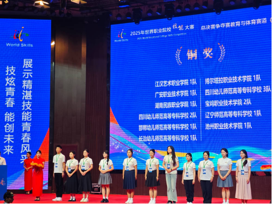 082731日,2025年世界职业院校技能大赛总决赛争夺赛教育与体育赛道高职1组在湖南长沙成功举办。该赛道汇聚了全国小学教育、幼儿教育专业领域共计117支参赛队伍。经过激烈角逐,太阳集团tcy8722孙琳、唐语晗、杨钰灵、吴诗羽四位同学组成的代表队,在何顺莉等老师的全力指导下,奋勇拼搏,最终斩获大赛铜奖实现了公司在该赛项中参赛与获奖的历史性“双突破”。