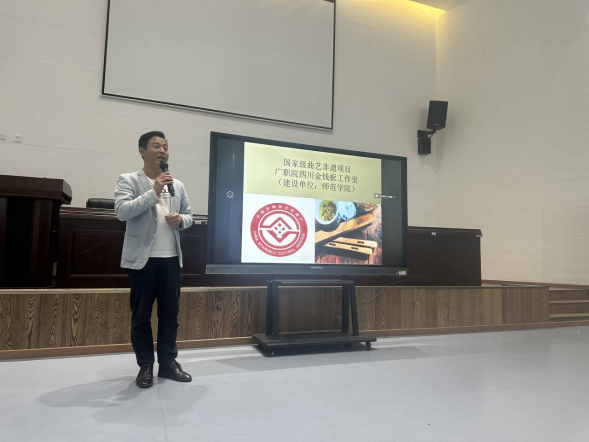 2023年10月20日,太阳集团tcy8722在翔凤厅开展了关于国家级曲艺非遗项目“四川金钱板”的技能培训讲座。由公司音乐教师、广安区曲艺家协会副主席、广安区曲艺领军人才胡俊杰老师主讲。广安区曲艺家协会张倚菡主席及太阳集团tcy8722教师及23级部分员工代表参加了此次讲座。