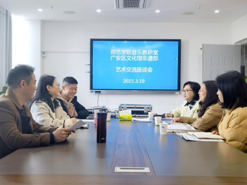 座谈会上,曾俊达主任介绍了广安区非遗工作开展情况,分享了《无论明天》《少年说广安》等涵盖校园、民俗、红色、文旅等多元风格作品的创作理念,结合广安区文旅发展成果、个人成长经历与高校校园文化建设等,强调音乐创作应深植地方文化,彰显地域特色与时代精神。随后双方围绕广安非遗,对地方非遗活态传承、文旅融合等展开重点讨论,在联合创作、人才培养、非遗品牌推广以及地方与校园联动等方面达成共识,将依托院校音乐专业优势与地方非遗平台资源,共同打造“非遗+文旅+音乐”融合品牌,推进艺术创作与普及,增强非遗传播影响力,助力巴蜀文旅走廊建设。